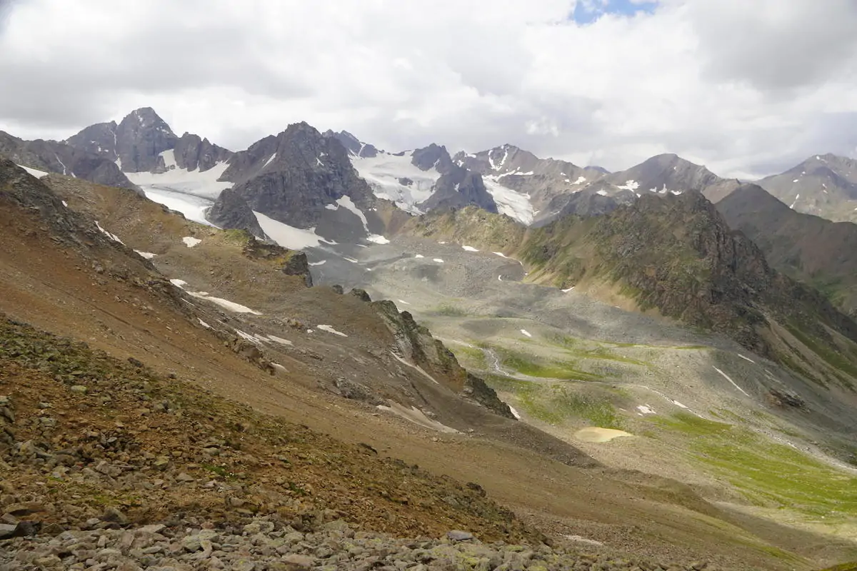 Подъём на перевал Каракайский Северный. Здесь также есть место для ночёвки.