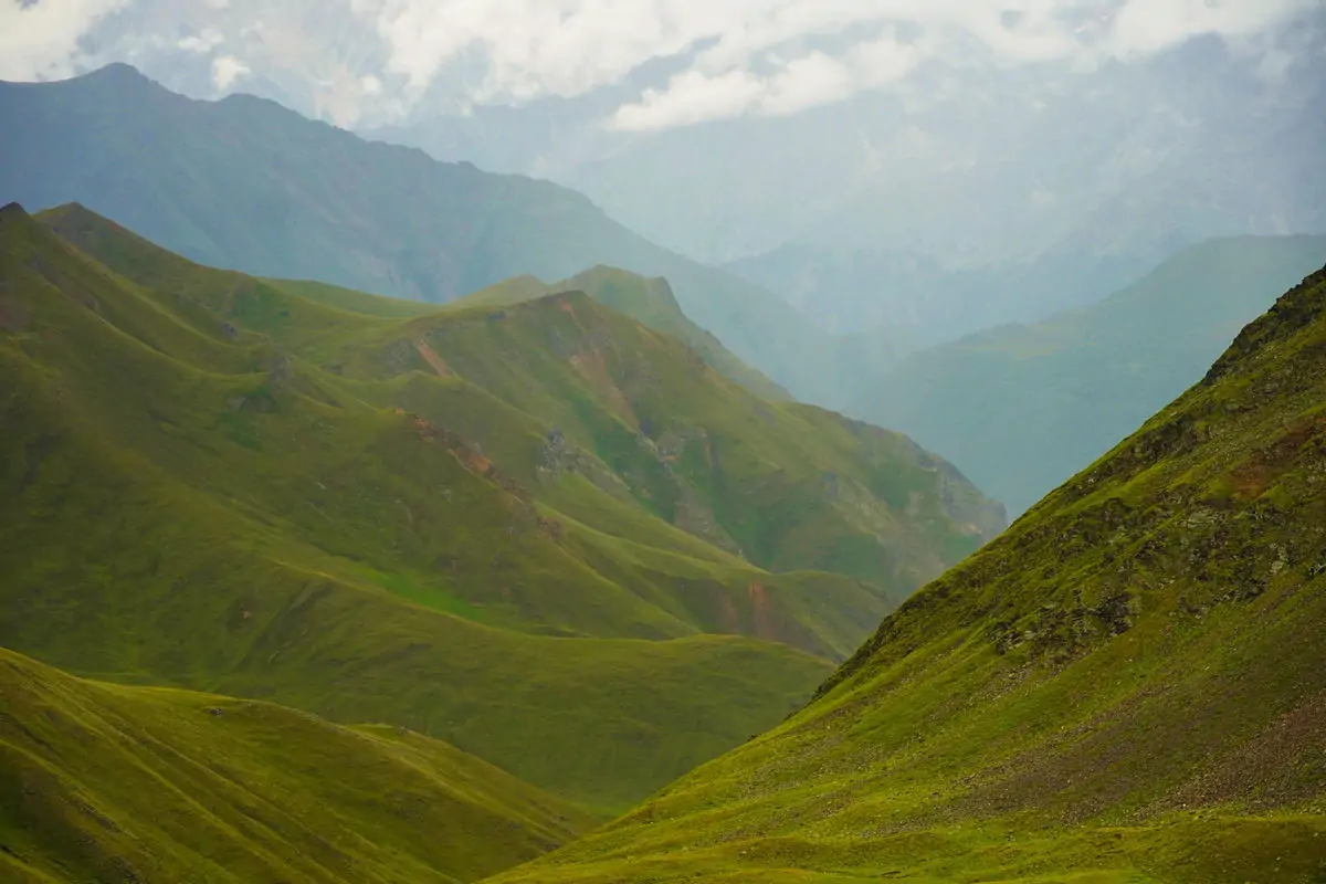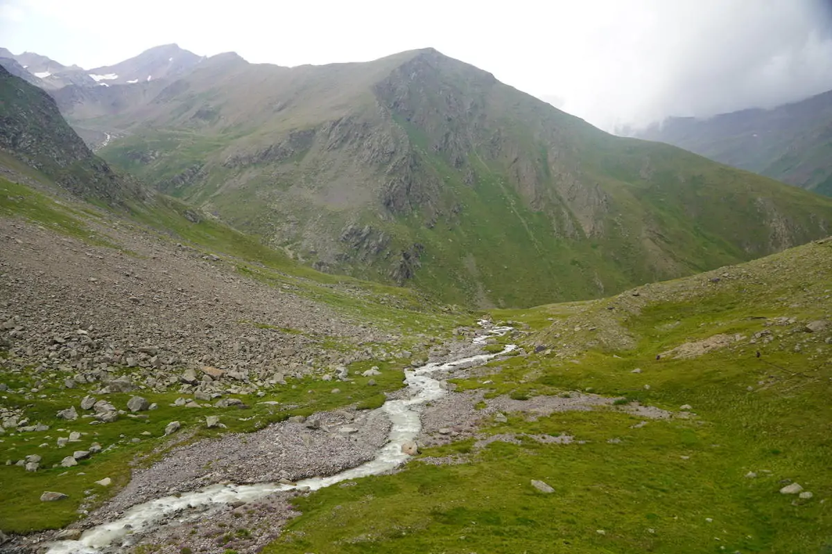 Спуск с перевала Кыртыкауш в долину реки Исламчат