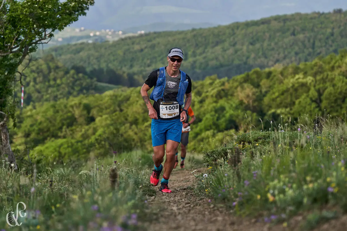 Впереди предстоял подъем на высшую точку маршрута, которая соответствовала 45 км дистанции. После этого начался затяжной спуск, на котором я почувствовал резкую боль в левой стопе. Пришлось останавливаться и ослаблять шнурки, но боль не ушла. К этому привела моя ошибка с выбором кроссовок на гонку — за пару недель до старта я немного модифицировал свои привычные The North Face Flight Vectiv. Шнуровка стала впиваться в подъём и натерла до серьезной боли. Тогда я принял решение остановиться, потратить время и убрать шнурки. После этого бежать стало легче.