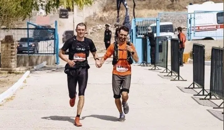 Лёша снова немного задержался на пункте питания, и ему потребовалось какое-то время, чтобы догнать меня. Но мы всегда держали друг-друга в поле зрения. За три километра до финиша мы встретили девушку с разметкой, которая показала нам на поворот в сторону последнего крутого подъёма на дистанции. Такой маленький сюрприз от организаторов после затяжного пологого скоростного спуска. Лёша поинтересовался, сколько остаётся километров до финиша. И когда девушка сказала, что остаётся 2.8 километра, у меня немного отлегло. Такое расстояние я осилю, подумал я про себя. Нам обоим было непросто. Мы оба хотели, чтобы это закончилось. Мне становилось всё хуже. Боль в плече уже явно давала о себе знать. Резервов организма уже не хватало на то, чтобы игнорировать её. При этом я прекрасно понимал, что Лёша в любой момент может поднажать и убежать от меня. Но он этого не делал. Он принял решение не оставлять меня одного, помочь мне морально и, в случае чего, физически. Этот поступок с его стороны тронул меня до глубины души. И уже когда мы подбегали к финишу, Лёша предложил финишировать вместе. Ведь смысла что-то доказывать уже не было. Мы оба всё понимали.