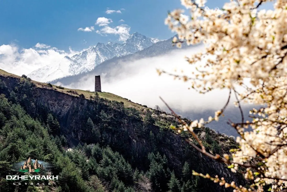 Фестиваль проходит в красивейших местах Кавказа среди старинных живописных башен. Стартовали участники гонки из древнего башенного комплекса Эрзи, построенного в XV-XVII вв.