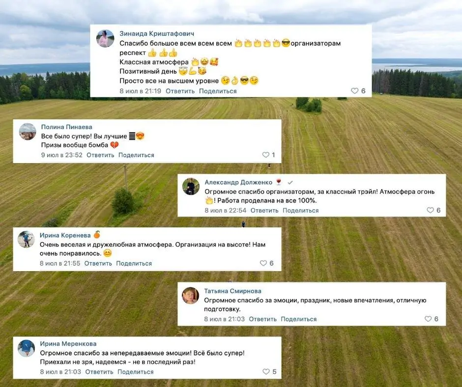 Организация супер! Получила большое удовольствие от праздника бега) Всё продумано, удобно, идеальная разметка, даже не пришлось смотреть на трек и есть таблички с подсказками, чтобы не пропустить открывающиеся виды на озеро за спиной. Кайфанула от трассы: волшебный хвойный лес, поле с ромашками, поваленные деревья, болото, ароматы папоротника и цветов, черника и земляника под ногами, которые так манили остановиться и вкусить их, стога сена, поля, просторы, лес, озеро. В общем, спасибо за удовольствие. И пострадать тоже нам отсыпали: крутые спуски, глиняные подъемы. На финише было вкусное питание и душ! За него отдельное спасибо! Так приятно было смыть с себя грязь теплой водой!! В ожидании награждения можно было послушать живой концерт.