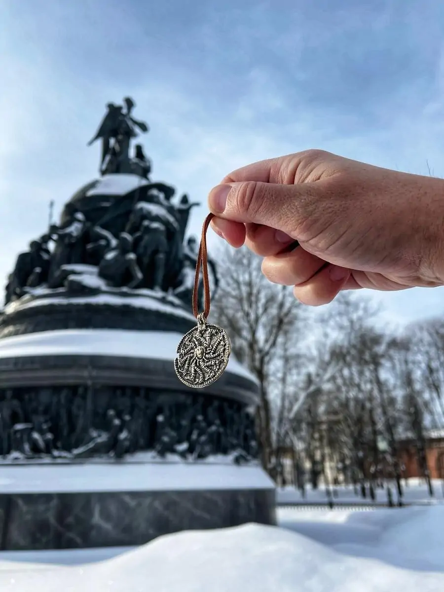 И только посмотрите, какую красивую медаль, даже не медаль, а литой медальон, получили все финишёры! Медальон является точной копией подвески-змеевика XII века, найденной в Новгороде на Троицком раскопе.