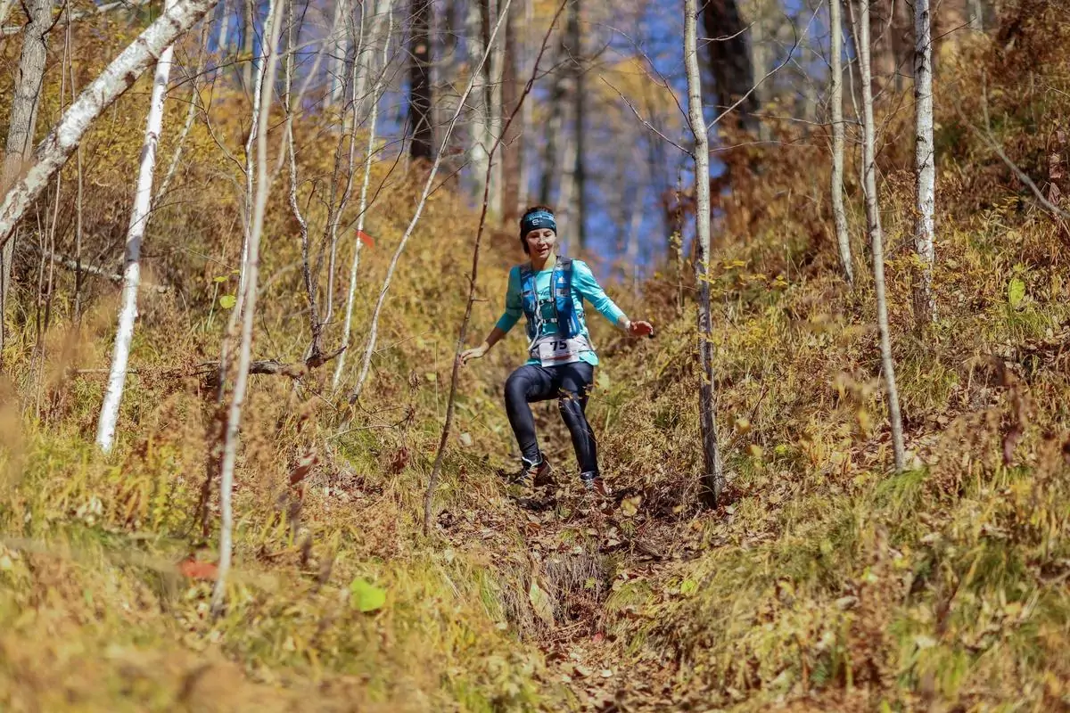 - 31.8 км 1230 D+ – на пути участников ждала серия маленьких лесных водопадов и три лесных пруда, узкие тропинки и техничные участки делают эту трассу серьёзным трейловым марафоном;