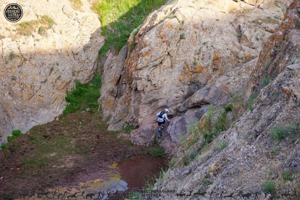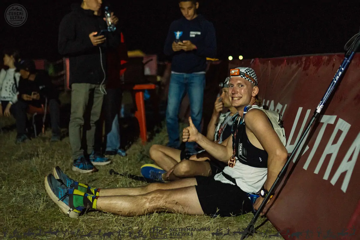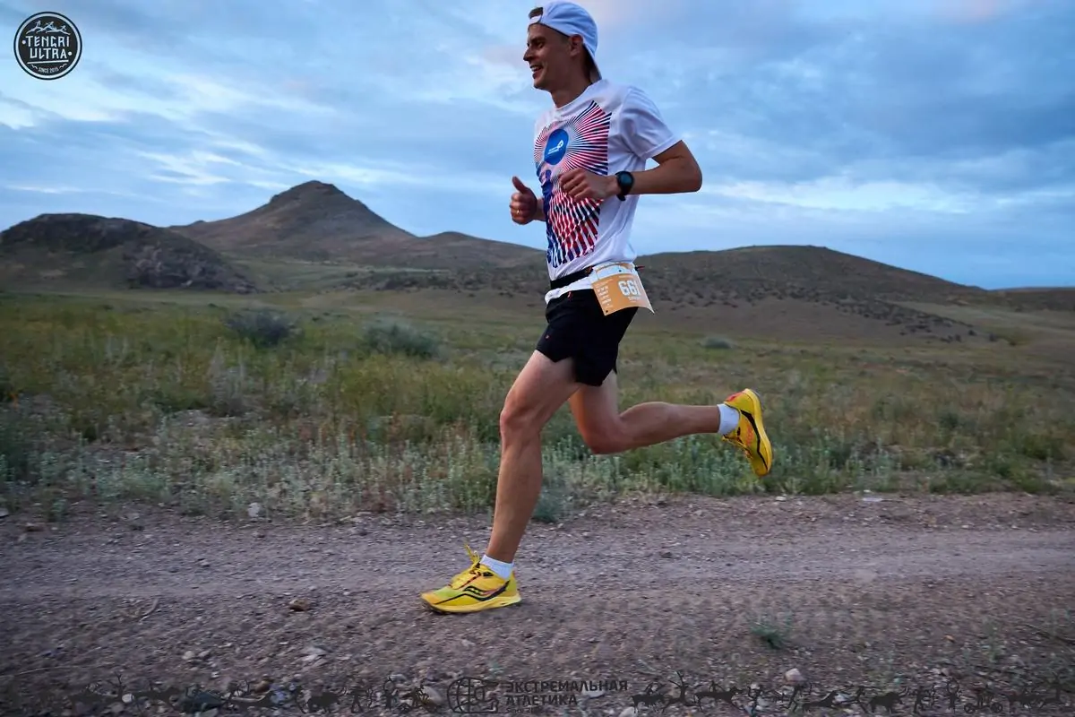 Титульный старт — это, конечно, Ultra 100 км с набором 1700 м. Дистанция проходит в один круг, при этом после первых 50 км возвращается к лагерю — удобная возможность завершить гонку, если возникла такая необходимость. Даже ранний старт в 5 утра не может избавить от неизбежности бежать в самое жаркое время суток в степи, где негде укрыться от солнца. Из 100 стартовавших на финиш успешно пришло чуть больше половины, и многие финишировали уже в темноте.