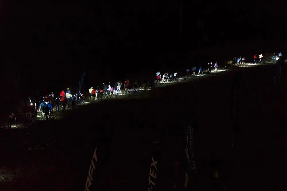 - Night Trail - 10 км, набор высоты 600 м. Технически не сложная дистанция, которая проходит по технологической, грунтовой дороге между курортами Альпика и Роза Хутор. На старте как всегда работал прокат фонарей Petzl.