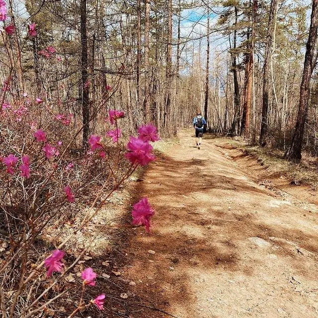 - второй день - Шара-Нур Трейл, 28 км, 800 м набора высот. Дистанция проходит по заросшему багульником лесу с финишем в п. Хужир.