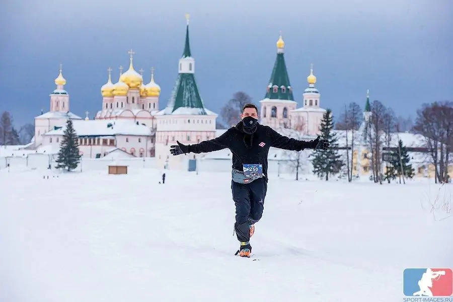 - 42 км, набор высоты - 400 метров, 3 пункта питания и две точки с водой. Участников ожидало много техничных участков, снег, лёд, непредсказуемая погода и максимально обновлённая дистанция. По ходу дистанции участники пересекали по льду пять озёр в Валдайском национальном парке.