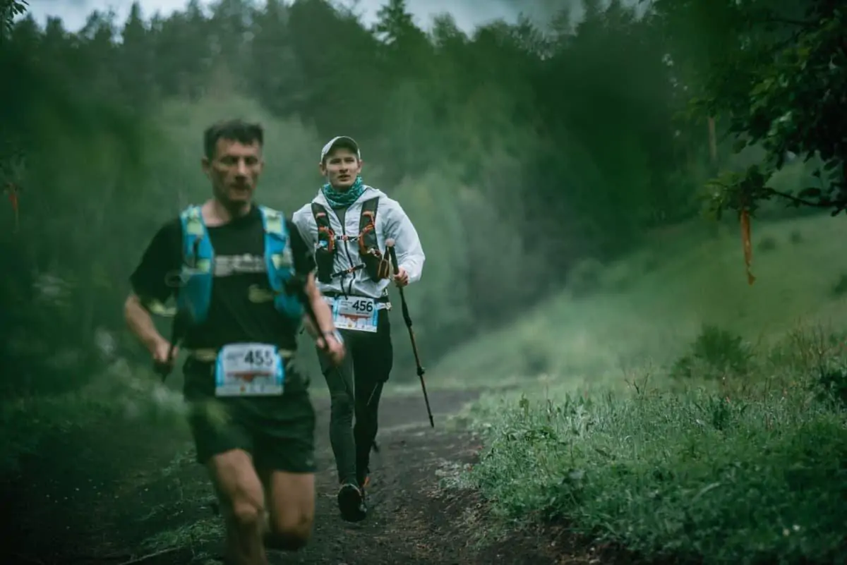 - 48 км - новая трасса, которую раньше организаторы не могли проложить, потому что на «майских», когда традиционно проводился трейл, высоко в горах еще лежал снег. В конце мая погодные условия позволяют забраться повыше. Участники бжали почти до самой Синюхи - высочайшей вершины района. Набор высоты - 2150 м