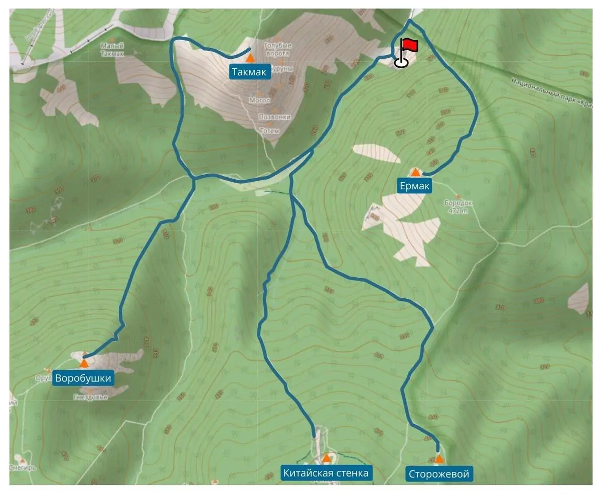 После прохождения каждой вершины необходимо отметиться в промежуточной точке – Карьере (контрольная точка на схеме), около места старта.