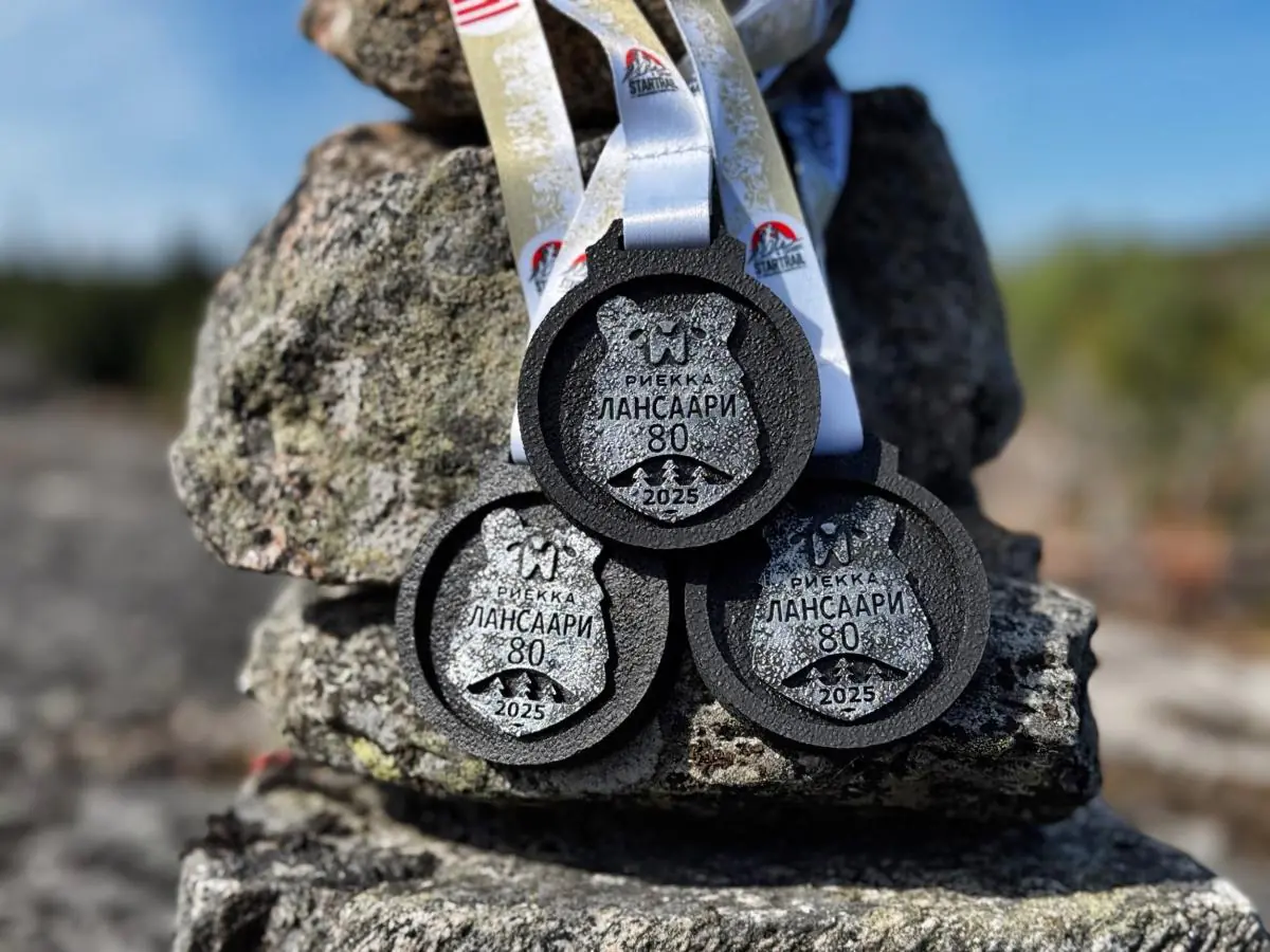 Уникальные медали из шунгитовой крошки, смешанной с полимером – лёгкие, но сохраняющие фактуру и глубину настоящего карельского камня.