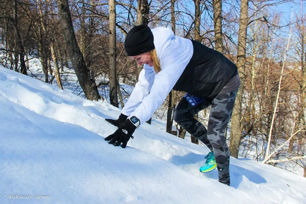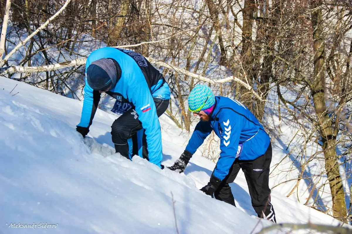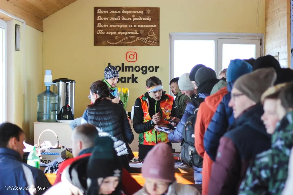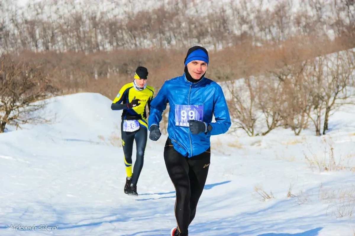 Был морозный солнечный день, когда более сотни любителей бега по снегу рано утром собрались для занятия своим любимым делом. Регистрируясь, примеряя именные стартовые номера и попивая чаёк, отважные и закалённые атлеты прикидывали глубину снега, характерно проводя черту рукой по бёдрам параллельно земле. Мнения разделялись, но “выше колена” было у всех. “Вообще-то меньше. Холодно же”, - сказал какой-то парнишка с рюкзаком оранжевых флажков, но ему никто не поверил. И правильно, ведь интереснее посмотреть самому.