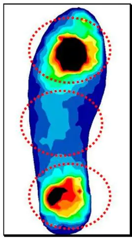 Вы можете задаться вопросом, имеет ли важное значение для бегунов поглощение ударной нагрузки, измеренное гидравлической машиной? В более поздних исследованиях рассматривались и другие показатели: в исследовании 2020 года, например, использовались стельки, позволяющие измерять пиковое давление на различные части стопы. Авторы проверили, как менялось пиковое давление в кроссовках New Balance 738, от новой модели до пары с пробегом в 350 км и далее до 700 км. Как показано на изображении ниже, наибольшее давление наблюдалось в средней и передней части стопы: