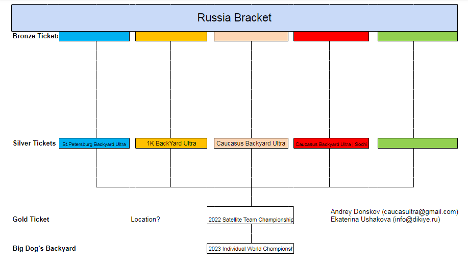 Да, безусловно. Мы связывались с Лазарусом, общались на тему стандартов проведения Backyard и системе отбора на Чемпионат мира по Backyard. С его благословения мы получили статус официальной отборочной гонки с “Серебряным билетом”. Сейчас Лазарус и его команда заняты созданием целой серии стартов Backyard по всему миру. На сегодняшний день они проводятся в 46 странах. Наш SPB Backyard Ultra входит в эту "экосистему". Все локальные гонки объединены в Турнир, где страны соревнуются между собой на звание Лучшей Сборной по Backyard, а их участники претендуют на получение “золотого билета”. “Золотой билет” - это право участвовать в самом главном старте - Чемпионате Мира Big’s Backyard Ultra, который будет проходить в октябре 2023 года на заднем дворе Лазаруса Лэйка в штате Тенесси в США и соберёт лучших из лучших.
