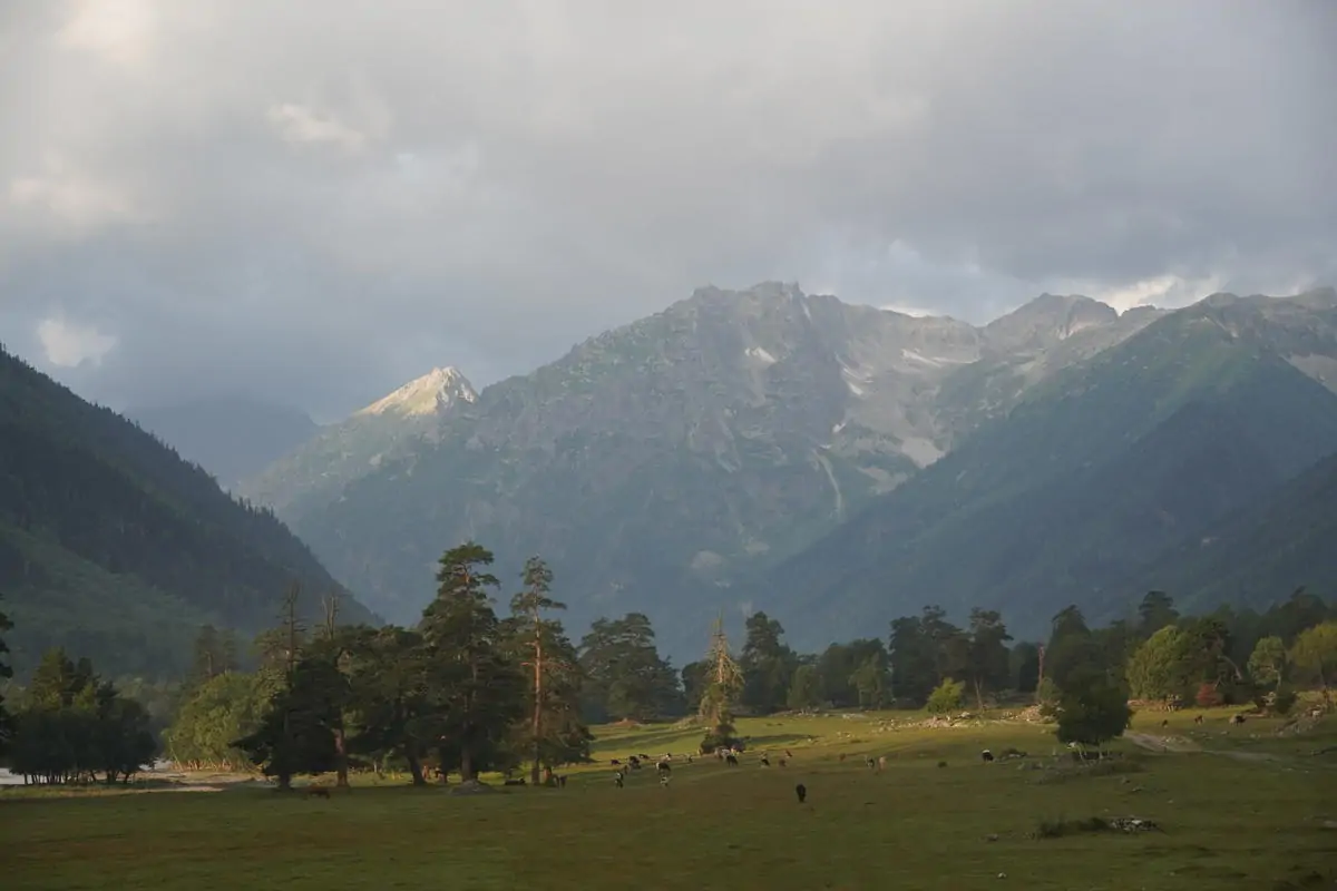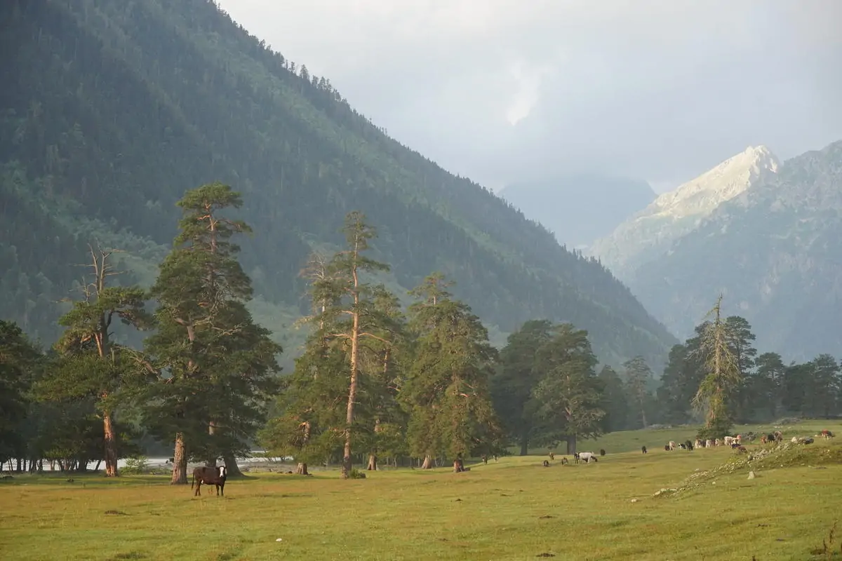 Во время движения по треку долгое время можно будет наблюдать высокие горы Тебердинского национального парка. Смешанные леса, альпийские луга, стада овец, лошадей, коров, орлы, парящие в небесах.