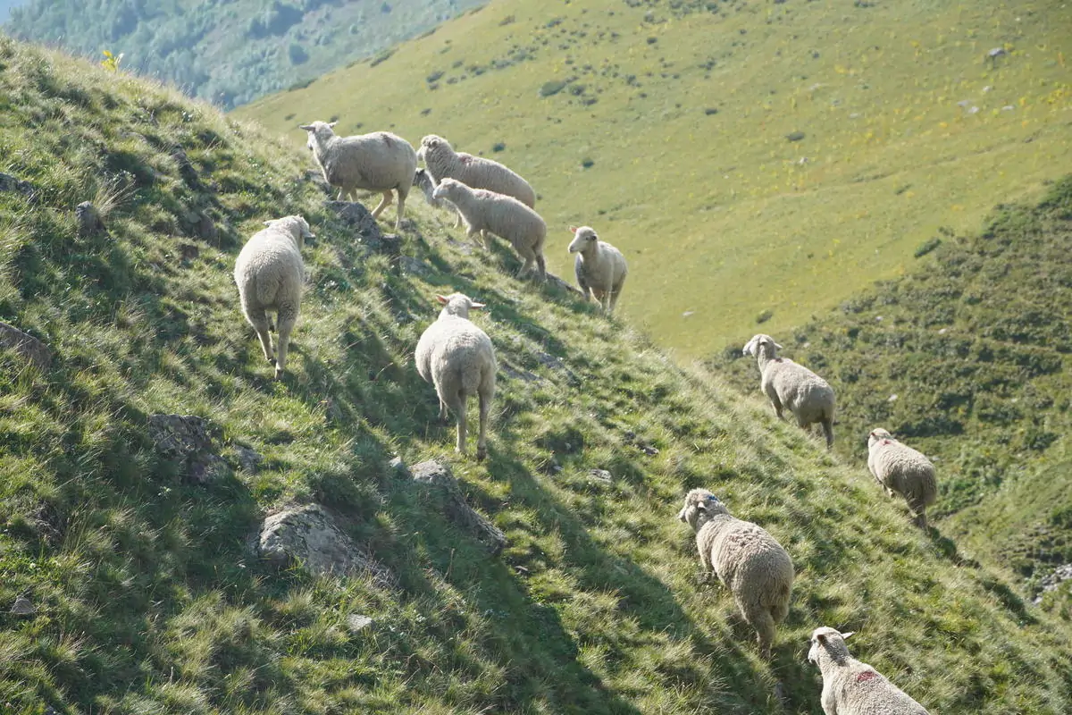 Отары овец пасутся возле коша “Макарон”. Внимание! Здесь сторожевые собаки могут быть не на привязи!