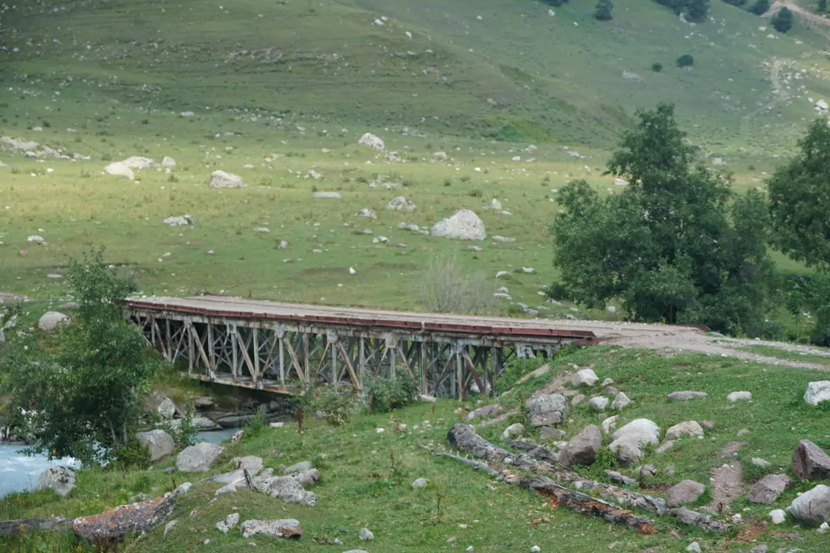 Спустившись к реке Марка, нужно повернуть направо и выйти к кошу, перейдя реку Малая Марка по импровизированному мостику в виде бревна. Затем чуть дальше перейти по нормальному мосту на левый берег Марки и далее держать путь по тропе до самого села Красный Карачай.