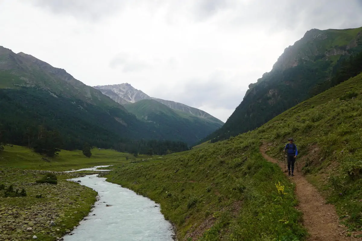 На самом деле существует несколько вариантов с категорийными перевалами через Тебердинский заповедник со сложными подъёмами, спусками и поверхностями. Этот регион в годы развития советского туризма, топографии, картографии был исхожен вдоль и поперёк. Все эти маршруты были нанесены на карты генштаба, которые легли в основу многих современных картографических сервисов. В реальности многих троп уже не существует, произошли обвалы, сходы ледников, сильно изменилась растительность, появились приграничные территории. В этой ситуации данный вариант маршрута является наиболее практически применимым для туристов среднего уровня подготовки, хотя на трек нередко выходят и вовсе начинающие туристы, ведь он проходит по отличным тропам, с видовыми панорамами и практически всегда идёт вдоль рек, где можно пополнить запасы.