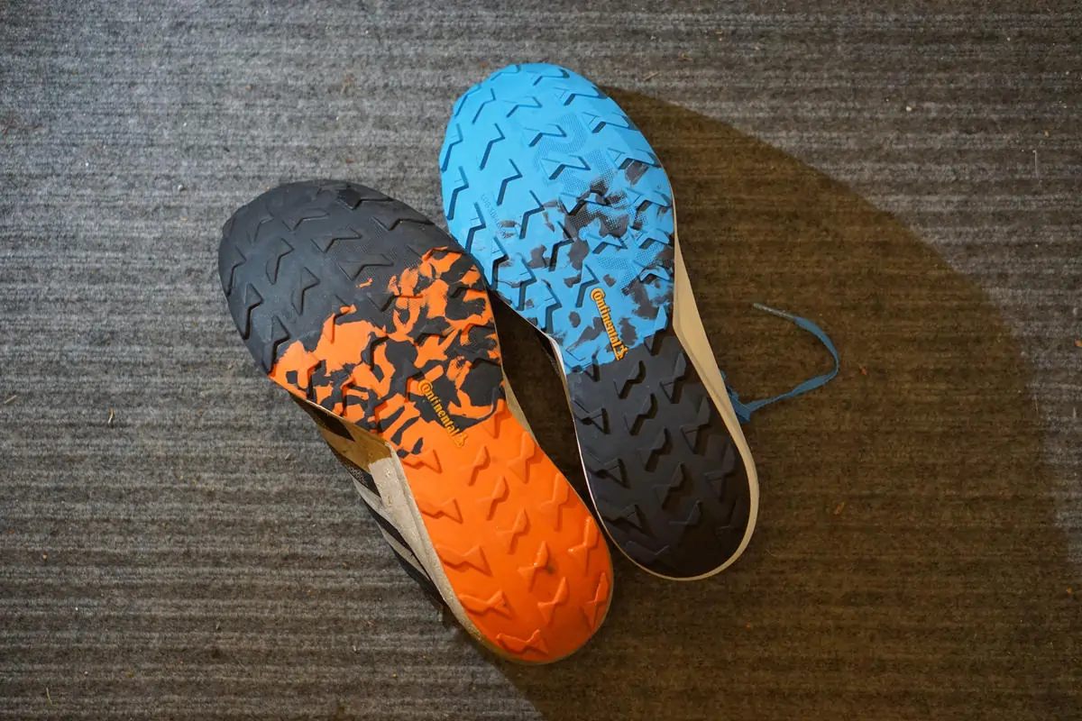 Компаунд Continental здесь «липкий», но на удивление износостойкий. Износ протектора я оцениваю как умеренный, особенно учитывая тот факт, что около трети пробега кроссовки сделали по асфальту.