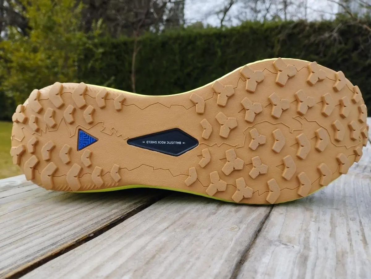Основной посыл этой модели - "качай ноги, беги быстро". Вся специфика подошвы DNA Flash заточена на сохранение энергии и импульс бега, чему способствует не только упругая подошва, но и пластина Ballistic Rock Shield в средней-передней части , хотя по ощущениям, она больше защитная, чем увеличивающая темп бега. Пластина эта увеличивает также торсионную жесткость до высокой, что делает модель не очень отзывчивой на технически сложных каменистых спусках, поэтому, и целевая поверхность у них все же - грунтовки, в том числе с камнями. На техничной тропе в них удобно будет разве что продвинутым "технарям" - адептам быстрых спусков и ног-кузнечиков.