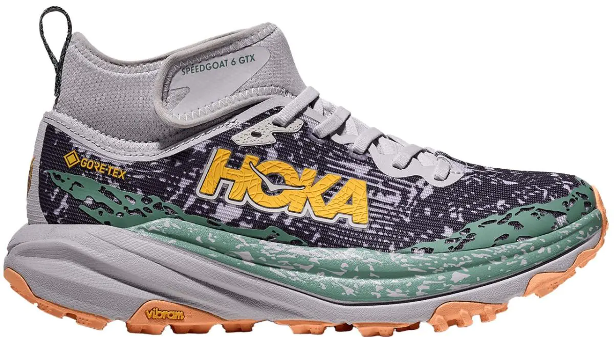 Одна из самых популярных моделей Hoka Speedgoat имеет свою версию для межсезонья, которая снабжена встроенной гамашей, защищающей от попадания грязи, камней, песка и снега внутрь обуви . Верх дополнен мембраной Gore-Tex Invisible Fit - беговой вариант климатической мембраны, которая легче стандартного Gore-Tex и имеет более высокие свойства паропроницаемости.