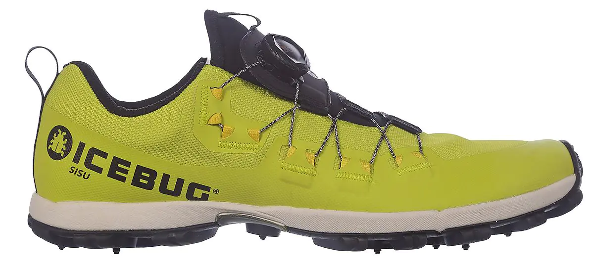 Зимние кроссовки от скандинавского бренда с хорошим уровнем амортизации и сцеплением с гололедом благодаря 13 шипам, встроенным в протектор и являющиеся динамическими - утопающими в протектор при беге по асафльту.