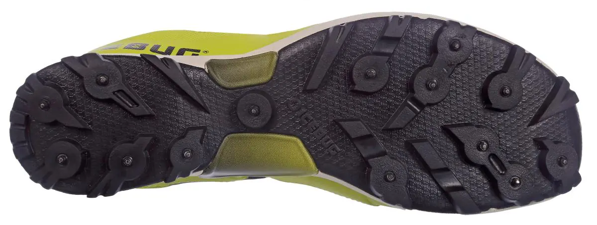 Суть осталась та же. Оптимальный вариант для бега в зимних условиях с большим прицелом на городской гололед, чем на экстрим, хотя и зимой в горах они поведут себя достойным образом. Здесть 12 шипов встроенных в универсальный протектор высотой 5 мм. Промежуточная подошва Energy Foam, которая, надеемся, ну будет слишком сильно дубеть на морозах, хотя это совершенно другая подошва по сравнению с предыдущими зимними моделями.
