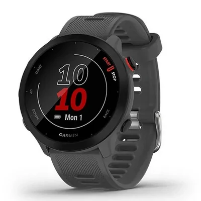 Самая младшая модель в беговой линейка Garmin, при этом обладающая обширным функционалом по тренировочной аналитике и рекомендациям. Здесь есть оценка максимального потребления кислорода (VO2), ежедневные предложения по тренировкам в соответствии с вашей текущей нагрузкой, виртуальный пейсер и рекомендации по восстановлению. Есть GPS, но без возможности навигации по треку, и множество спортивных режимов. Батареи хватает до 20 дней в режиме смарт-часов и до 20 ч с GPS. Также здесь множество инструментов для мониторинга здоровья — оценка уровня энергии Body Battery, уровня стресса, счетчик шагов и минут с высокой интенсивностью. И, конечно, синхронизация с телефоном для получения уведомлений и управления музыкой.