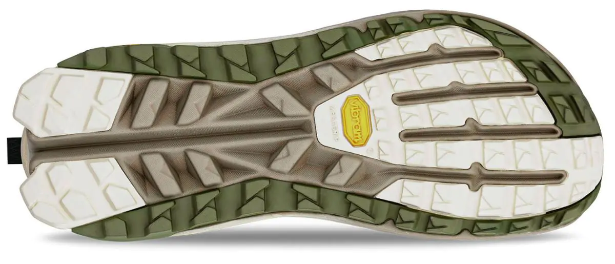 Подошва имеет геометрию рокера для повышения динамики бега. Подметка Vibram Megagrip с грунтозацепом высотой 5 мм