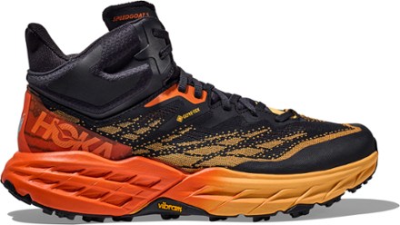Одна из самых популярных моделей Hoka Speedgoat имеет свою версию для межсезонья, которая снабжена встроенной гамашей, защищающей от попадания грязи, камней, песка и снега внутрь обуви. Верх дополнен мембраной Gore-Tex Invisible Fit - беговой вариант климатической мембраны, которая легче стандартного Gore-Tex и имеет более высокие свойства паропроницаемости.