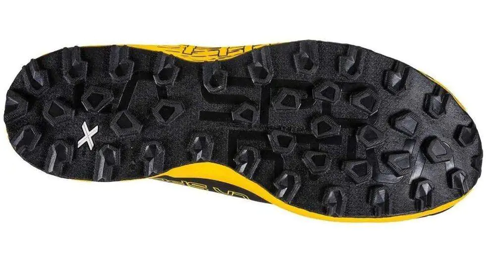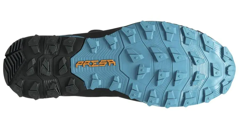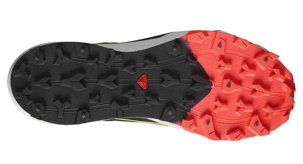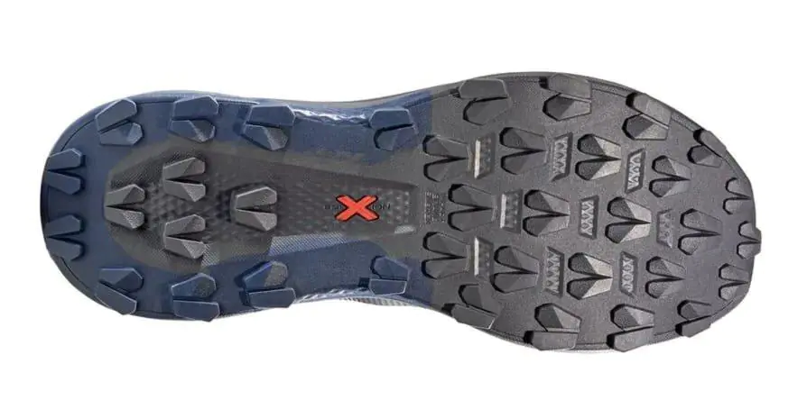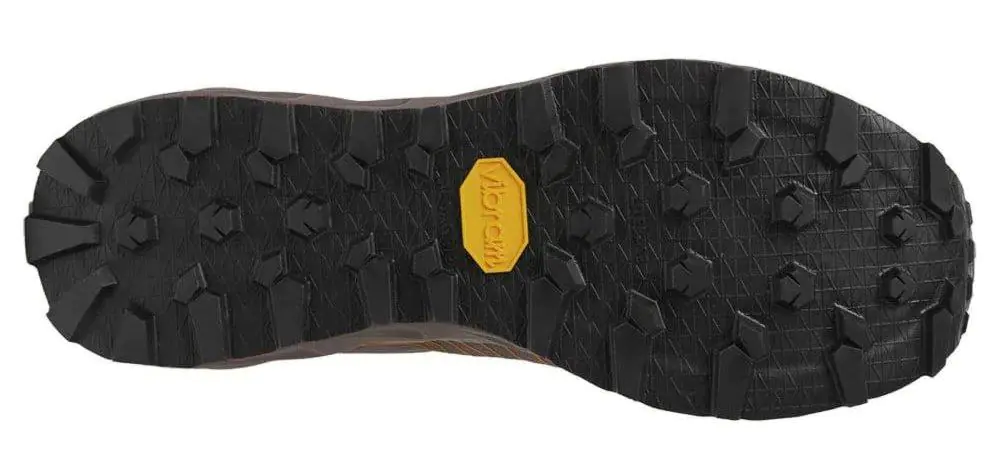 Подошва имеет геометрию рокера для повышения динамики бега. Подметка Vibram Megagrip с грунтозацепом высотой 5 мм