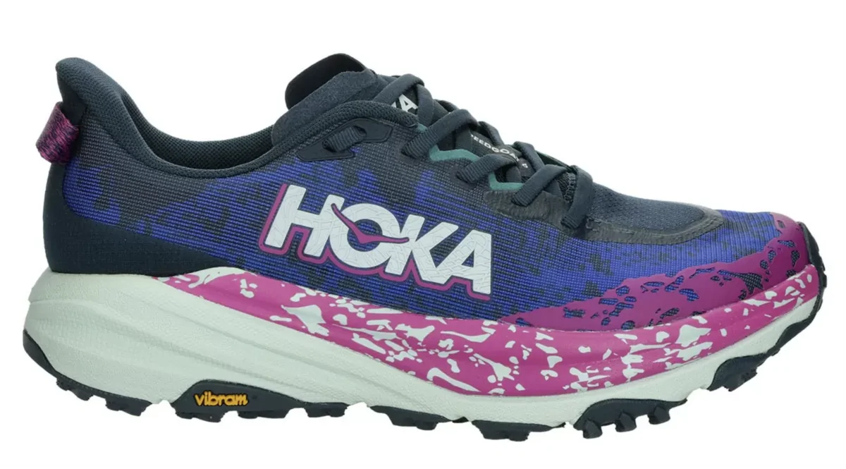 Полностью переработанная, можно сказать, абсолютно новая модель — Speedgoat 6 теперь легче, мягче и отзывчивее. Новый верх сделан из инженерной двуслойной сетки, и, благодаря отсутствию ламинации, ощущается более гибким. Внутри стопа чувствует себя свободно, и фиксируется она плотной вязкой верха на достаточном уровне для быстрого преодоления технических участков.