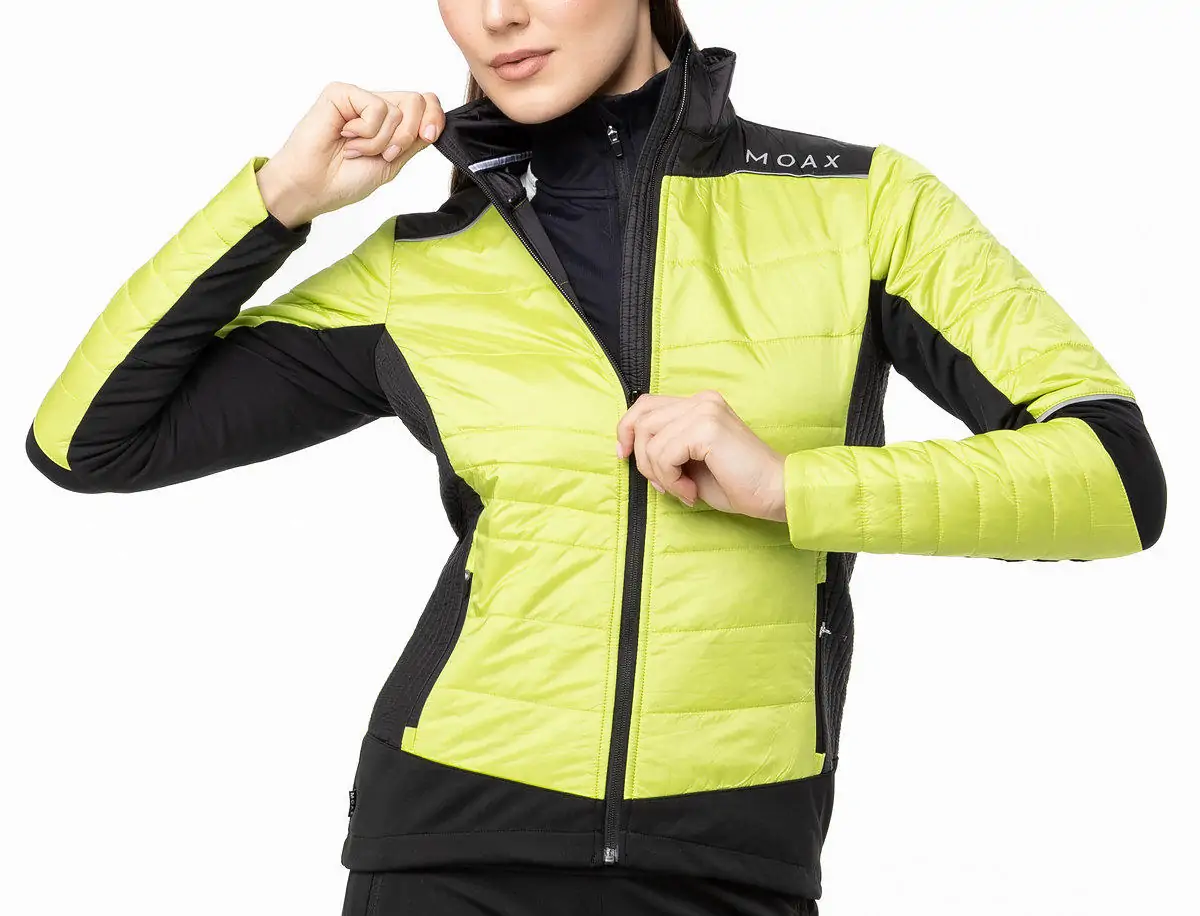 Если вы любите что-то потеплее, то можно обратить внимание на MOAX Navado Hybrid с утепленной передней частью и рукавами. При этом у куртки есть такая же эластичная вставка на спине, которая помогает лучше отводить влагу, а еще дополнительный карман на пояснице. Мужская модель прямая, а женская приталенная, чтобы подчеркнуть спортивную фигуру.