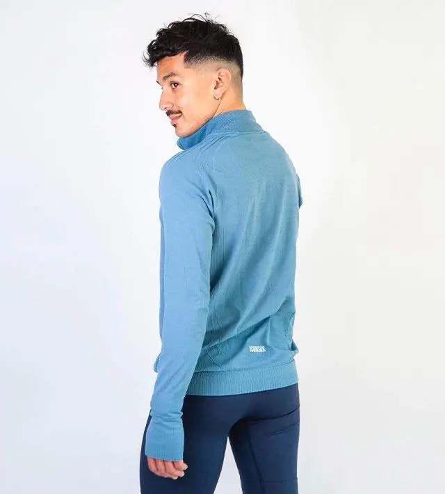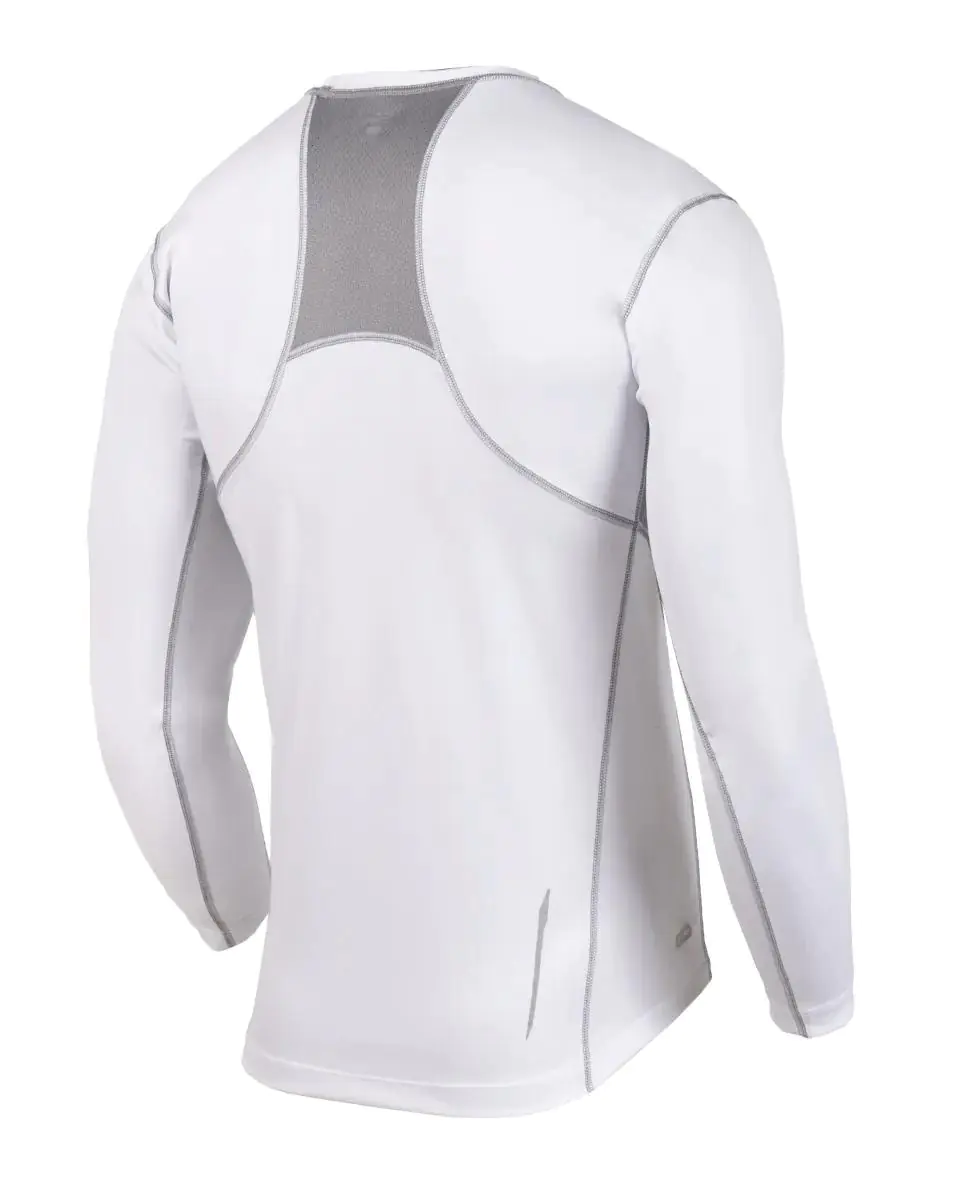 Тонкий, отводящий пот, греющий материал. Желательно - лонгслив (с длинным рукавом) из синтетики или шерсти меринос. Можно простую футболку с длинным рукавом, но ее термоизоляционные свойства ниже. Стоит отметить, что в термин "термобелье" попадают чаще всего белье, которое больше подходит для горных лыж, туризма. Такое белье для бега не очень хорошо подходит. Поэтому если ищете именно термобелье для бега, то обращайте внимание на то, для чего оно предназначено. В нашей подборке именно такие термухи.