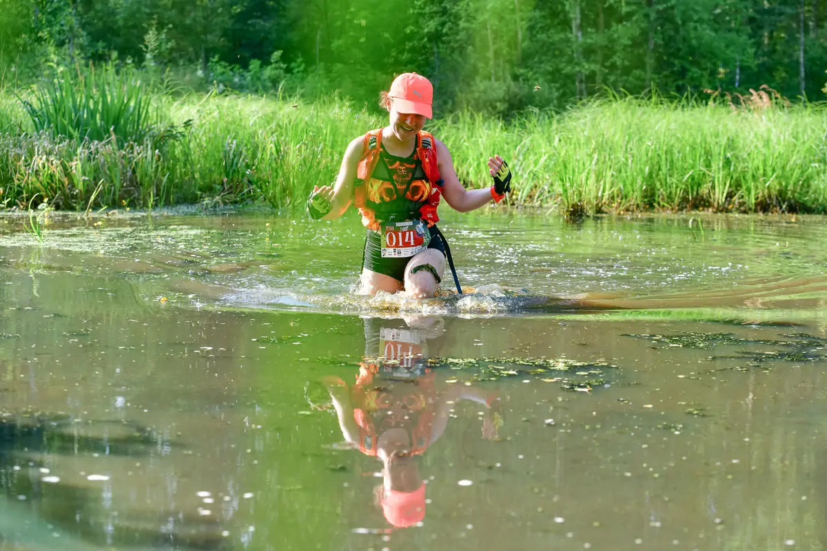 Будучи практически непроходимым и тем более непробегаемым в мае, он перенесся на июнь – и стал настоящим стихийным забегом лета. Все дистанции предполагали наличие бродов, как минимум трех – четырех, из которых смог выстоять и не пересохнуть только один. Знатно обмелевший, он стал не более метра глубиной.