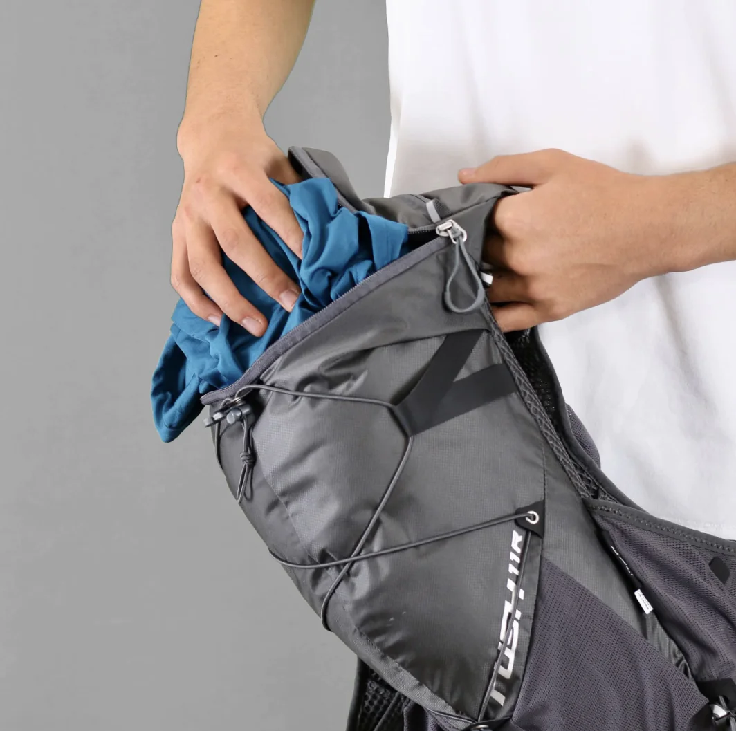 В рюкзак Rush 11, благодаря его геометрии, легко влезет утепляющая флиска и даже хард-шелл при желании, брюки что делает этот рюкзак по существенным высотам в любое время года. Чтобы фонарик не терялся среди кучи вещей или гелей - для него предусмтрен отдельный карман на молнии сверху. Система фиксирует палки с двух разных сторон. Нижний эластичный карман на поясе для быстрого доступа к ветровке или мембранке или/и к брюкам.