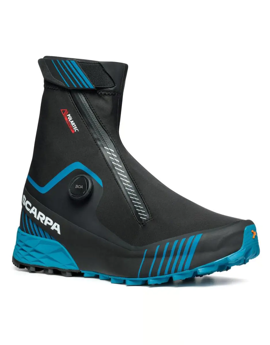 Кроссовки Ribelle Run Kalibra G от Scarpa отлично подходят для использования в экстремальных условиях. Это зимняя водоотталкивающая версия Ribelle Run. Благодаря конструкции верха Sock-Fit кроссовки имеют точную посадку и защищены от непогоды. Конструкция вдохновлена альпинистскими ботинками и обувью для скалолазания. Лента из ЭВА соединяет межподошву и переднюю часть стопы с пяткой. Это обеспечивает боковую устойчивость.