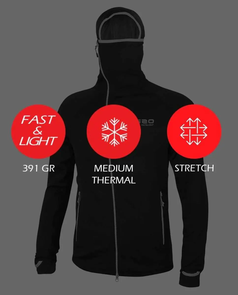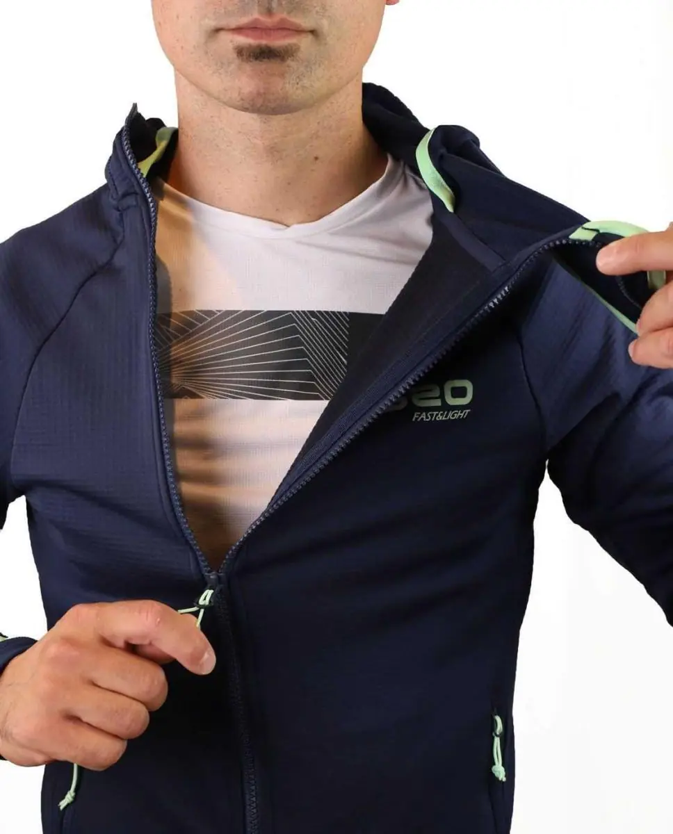 Куртка OS2O Phantom Grid для занятий в горах в холодную погоду. Ткань Polar Stretch Grid® создает сеть микроканалов для циркуляции воздуха, обеспечивая отличную теплоизоляцию, отличную воздухопроницаемость и длительную свежесть благодаря антибактериальной обработке Odor Shield. Высокая эластичность обеспечивает идеальную посадку, не стесняя движений. Капюшон тщательно продуман, а воротник можно использовать как маску для защиты рта и носа в самых экстремальных условиях. Асимметричная молния, застегивающаяся с одной стороны, предотвращает дискомфорт даже после многих часов использования. Манжеты с отверстиями для больших пальцев обеспечивают идеальную посадку, сохраняя защиту и тепло.