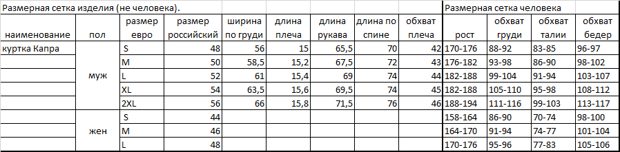 Внимательно сделайте все мерки, сопоставьте с размерами куртки и выберите размер.