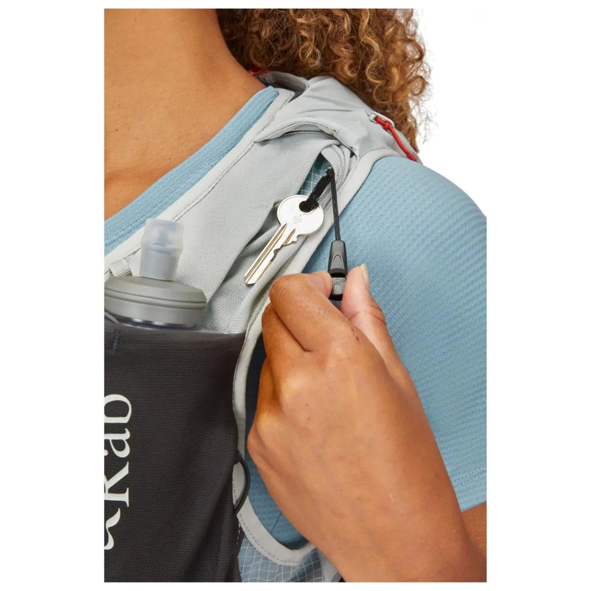 Большое заднее отделение с U-образной застёжкой-молнией обеспечивает достаточно места для дополнительных слоёв одежды. Полностью регулируемая система фиксации на груди обеспечивает плотное прилегание, а задняя эластичная резинка позволяет хранить вещи внутри. Надёжные карманы с ультралёгкими застёжками-молниями защитят ваши ключи или другие мелкие предметы, а вместительные эластичные карманы обеспечат лёгкий доступ к баточнчикам или гелям.