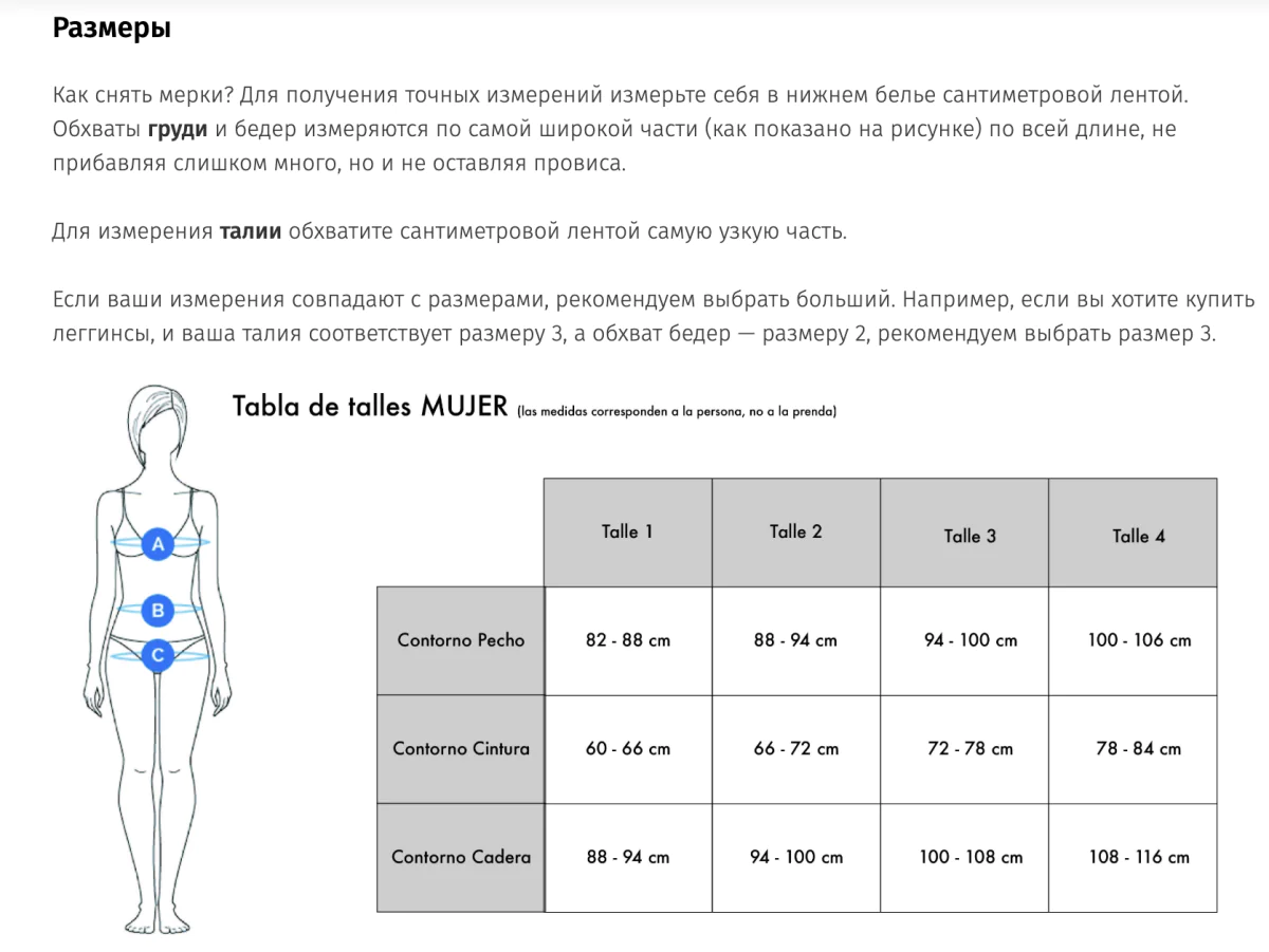 Изделия имеют унифицированные размеры от 1 до 4 (Talle). За консультацией по размеру оставляйте заявку.