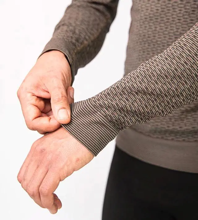 - Быстрое высыхание благодаря составу пряжи, который регулирует температуру мышц и сохраняет сухость во время активности.