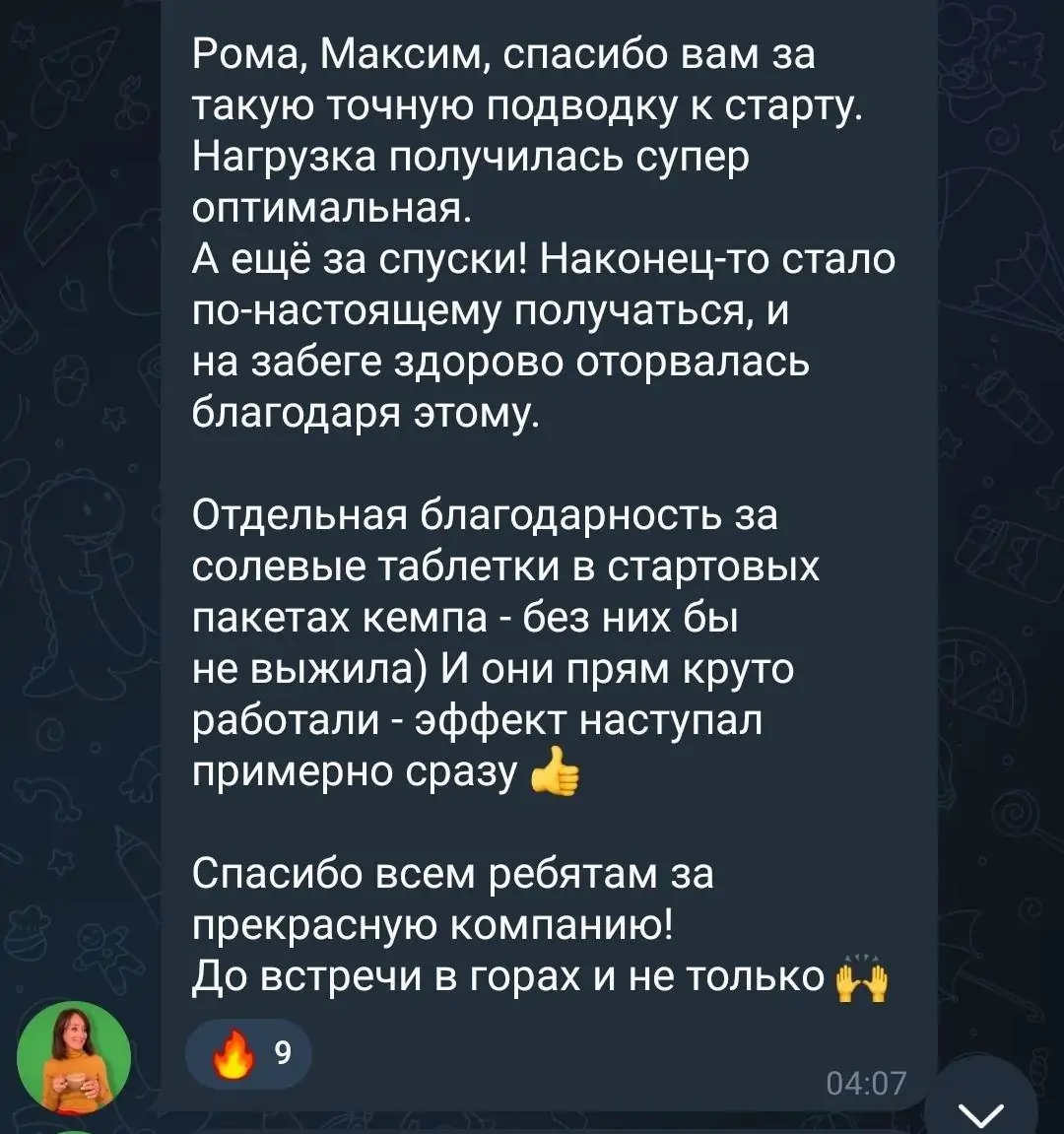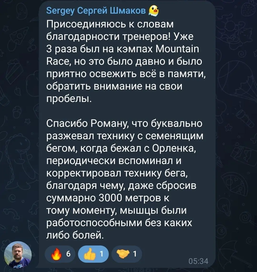 Спасибо огромное, Антон Ререкин, за живописные маршруты; за то, что делился опытом; терпеливо ходил в нашем темпе; не дал нам растечься после кемпа и держал нас в тонусе до последнего; поддерживал на забегах и своей любовью к трейлам, своим примером вдохновил работать усерднее, чтобы смочь позволить себе желанные дистанции))